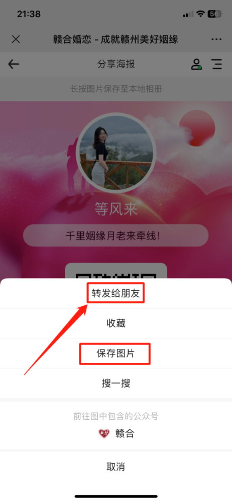 第一步:关注“赣合婚恋”公众号