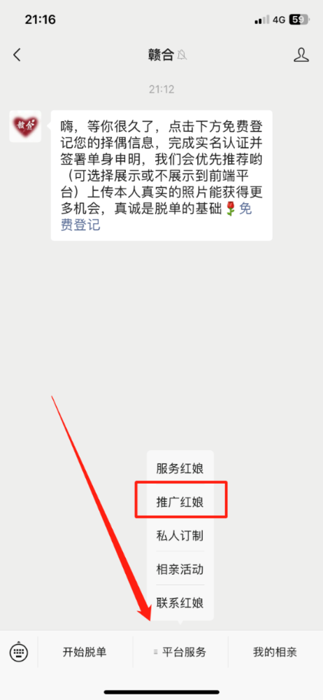 第二步:进入公众号,开通推广红娘。